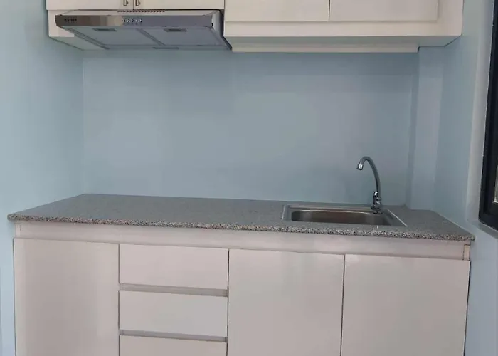 Eine voll ausgestattete Küche ist ideal für die Zubereitung von hausgemachten Mahlzeiten. Das Apartment ist gleich neben der Bushaltestelle Alburquerque.